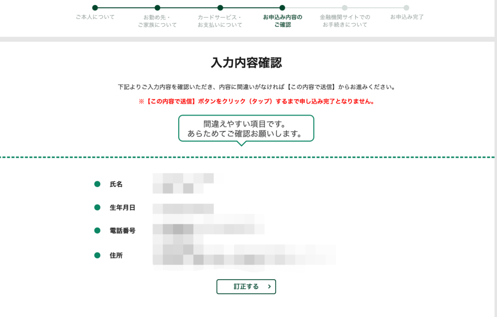 内容を確認して入力内容が間違っていなければ「この内容で送信」をクリックしましょう!
